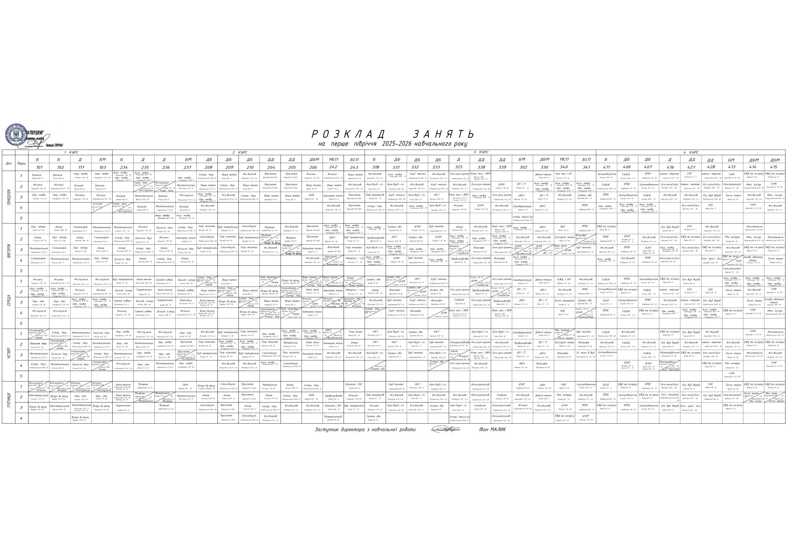 Розклад занять 1 семестр 2025-2026 навчального року